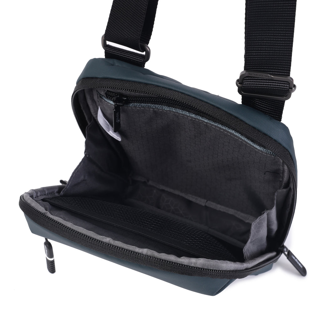 The Turn crossover bag is the perfect companion for your daily commute. The sleek, compact shape will complement your business style, while functional features such as a safety hook and key fob help to keep your essential items secure and within reach at all times. This bag might be small, but it has plenty of space for your mini tablet in a mesh pocket for best airflow, allowing you to answer emails on the go. The RFID pocket keeps your cards safe from potential scammers, while the lightweight, water-repellent material makes this a comfortable piece that keeps your belongings from getting too wet when you get caught in those city showers.