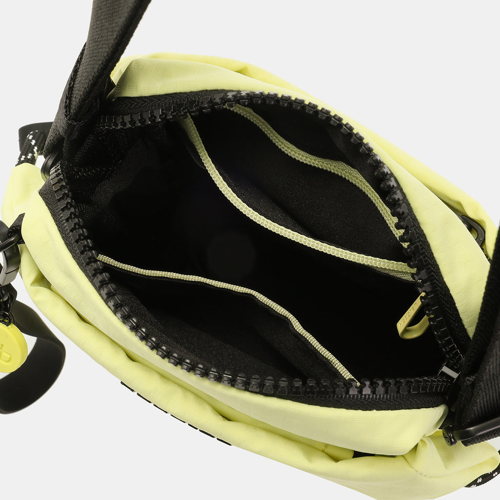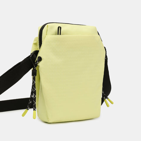 The smallest bag in our String collection is the most surprising. Sipho has more than enough space inside for your essentials, with an expandable front pocket that can fit your water bottle or a small umbrella! With a fob for your keys and a pocket for your phone, you can simply slip your purse inside and you have everything you need for a day out and about! The soft exterior material is partially made from recycled plastic bottles and uses rubber detail and metal hardware to add a classy edge to the look. It is water repellent too, so you don’t have to worry about rain or spills. The colour-blocking design looks amazing alongside contrasting string detail, while the black lining finishes the look perfectly.